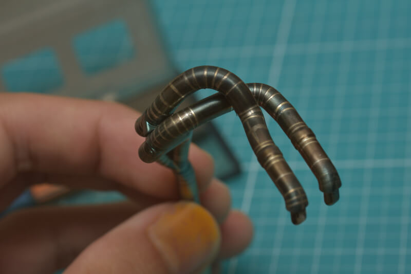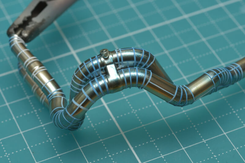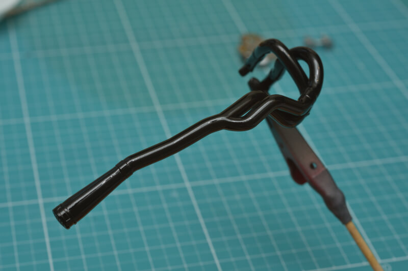 このキットには2本マフラーが付いてるので、もう片方も同じように仕上げます。