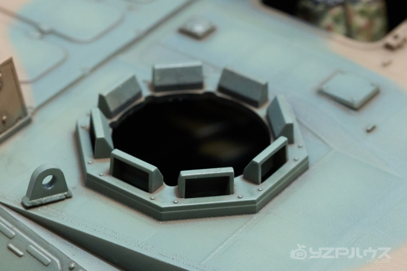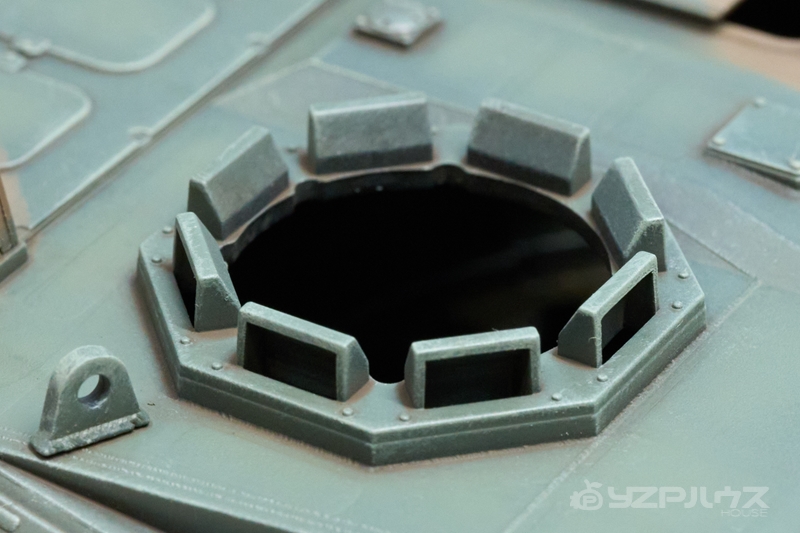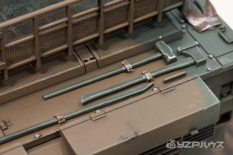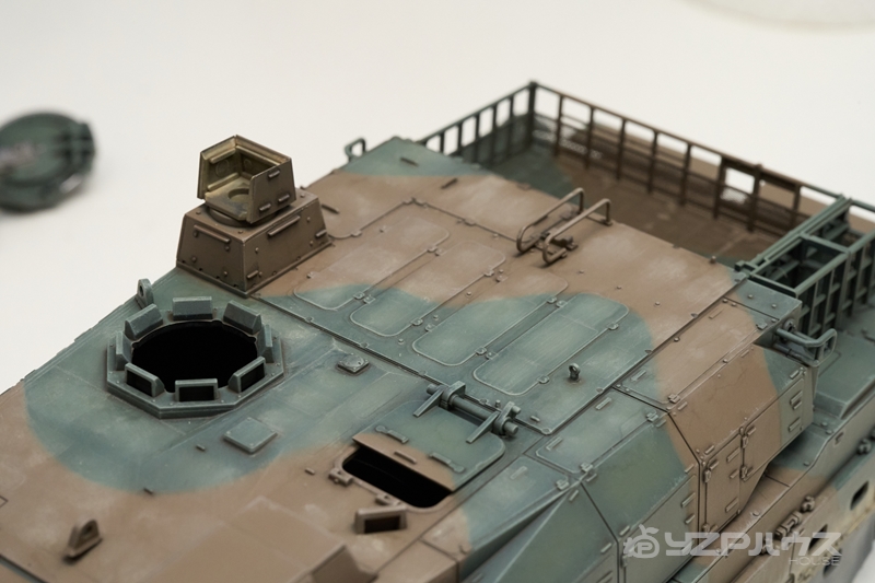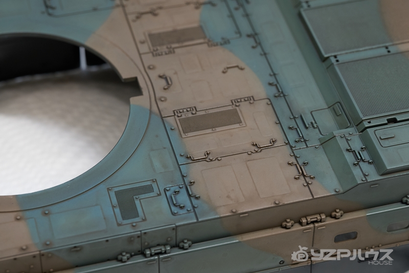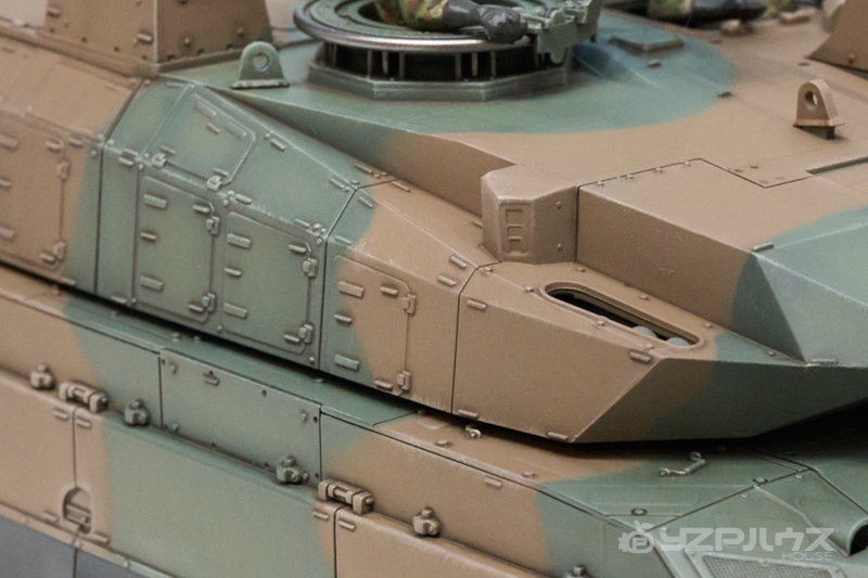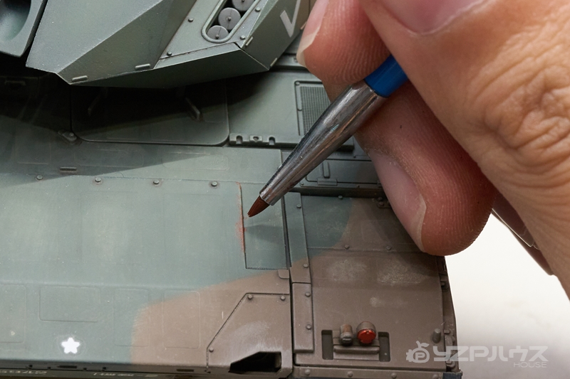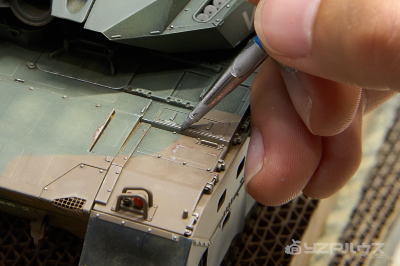 実際の10式戦車を観察してみると、隊員が頻繁に乗り降りする箇所や、よく歩く場所に塗料剥げがあるのが確認できます。