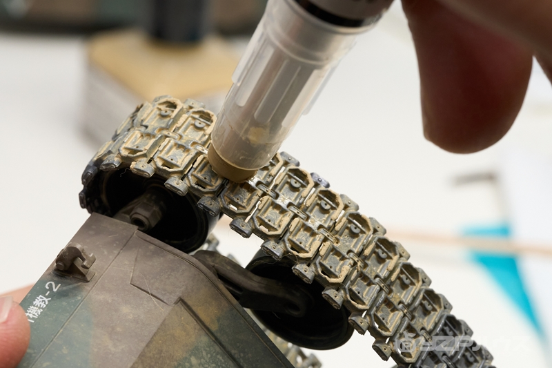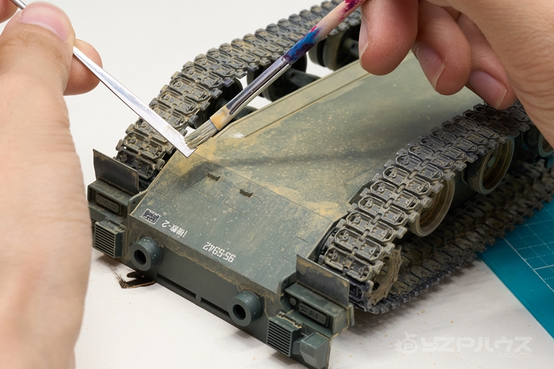 履帯や転輪、泥除けなどの大きな泥汚れが付く箇所でよく使います。