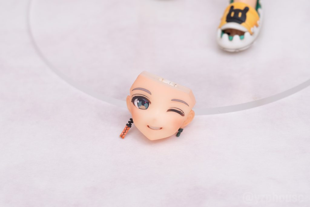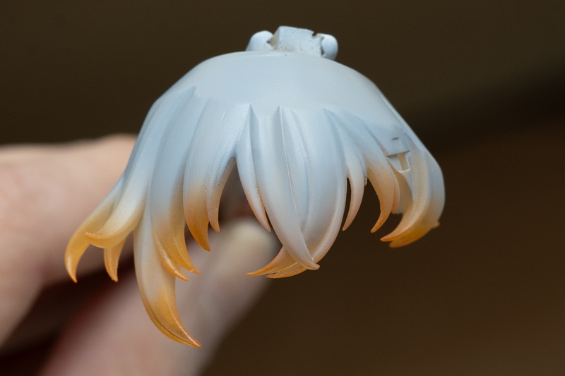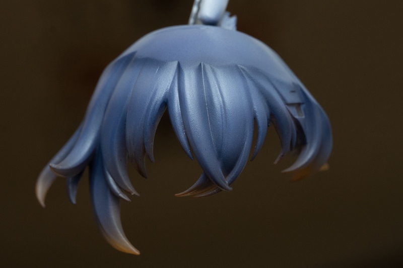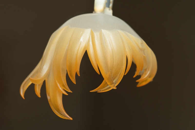 クリアーパーツで整形された前髪は、リンの髪特有の「オレンジ→紺色」を再現するためでもあります。