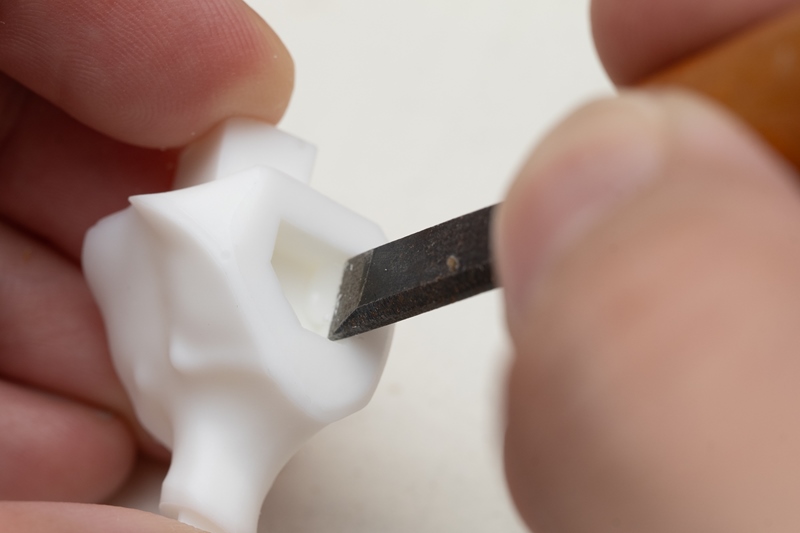 シリコーンゴム型の不良や破損により、ダボ穴が正しく複製されてないことがあります。