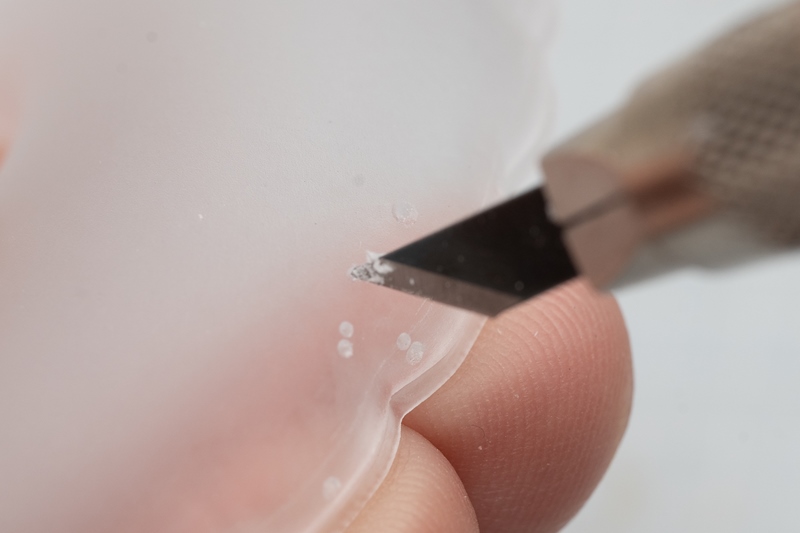UVパテは気泡だけでなく湯口付近のエグれ修正にも使うことができます。