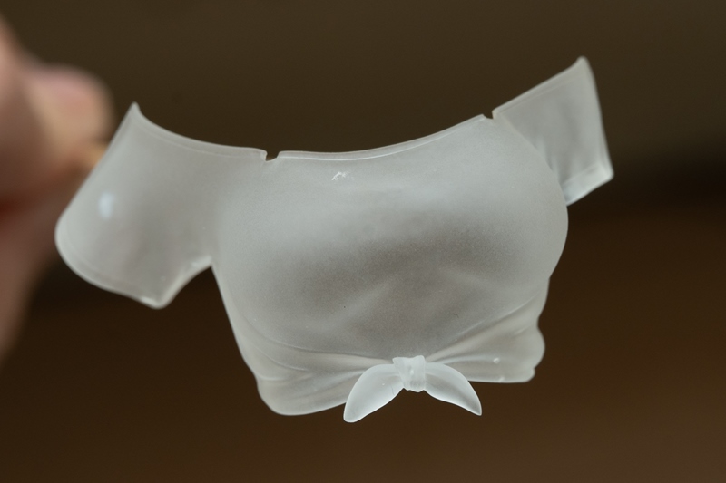 シャツの透明感を残したままクリアーホワイトで上手に仕上げていくには、絶妙バランス感覚が必要になってきますので、個人的には本体とビキニ(オレンジ部)の塗装が終わってから取り掛かるのがオススメです。
