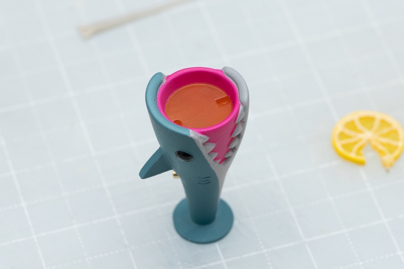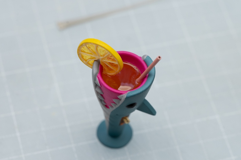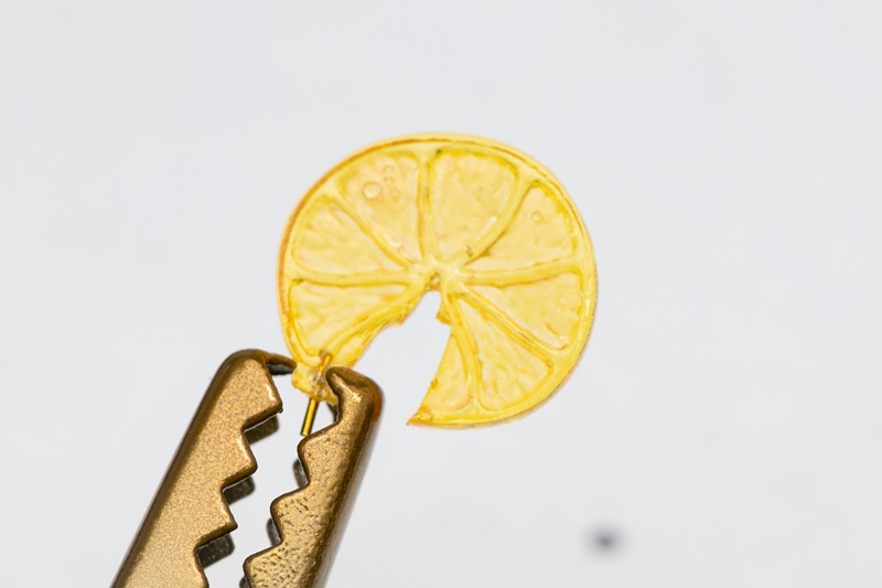 ストローとレモンの接着には、クリアーパーツの気泡埋めで使った「UVパテ」を使います。
